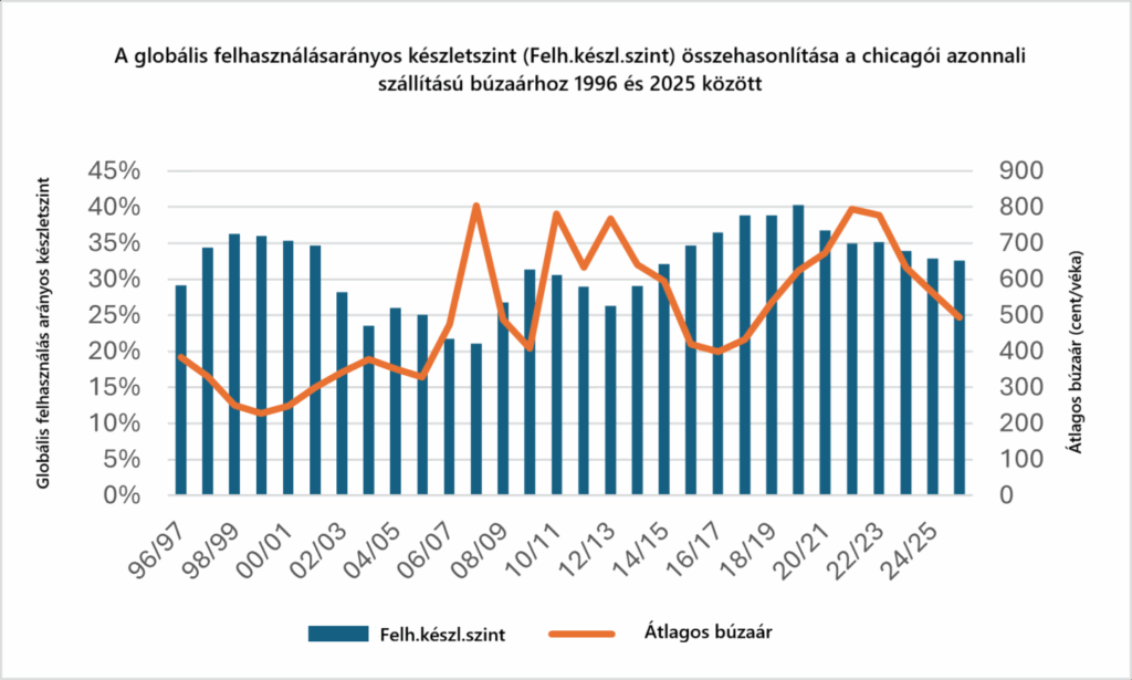 Vajon a jelenlegi világpiaci búzaárak összhangban vannak a globális felhasználásarányos készletekkel?