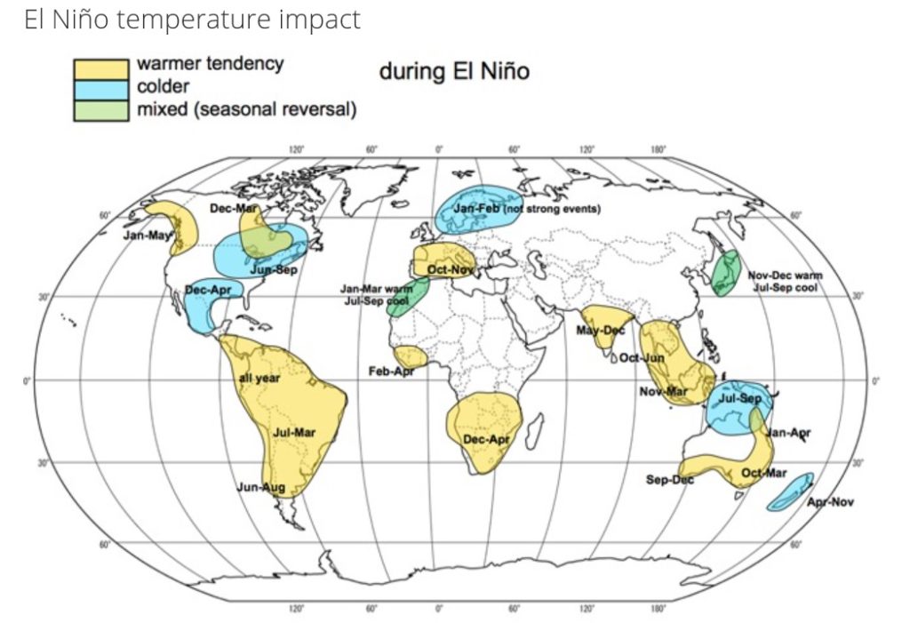 Míg Európában az El Nino hatása közvetett, függ más regionális időjárási jelenségtől (mint az észak-atlanti oszcilláció), ezekben a régiókban, főleg Dél-Kelet-Ázsiában tudják, hogy az egyiktől biztosan „megsülnek”, a másiktól pedig még jobban „szanaszét áznak”, és a helyi mezőgazdaság viseli ennek minden következményét. Tehát, és sajnos ezt így kell kimondani, amikor ezekben a régióban el kezdenek aggódni, az a legjobb indikátor. Csak akkor kezdenek el aggódni, amikor már bizonyos e két időjárási jelenség bekövetkeztésnek a valószínűsége.