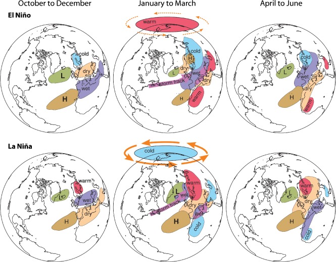 El Niño is the warm phase of the El Niño–Southern Oscillation (ENSO), a natural climate cycle. During El Niño, the global average temperature is often higher than normal. The phenomenon disrupts rainfall patterns worldwide, bringing heavier rain to some regions while leaving others much drier.