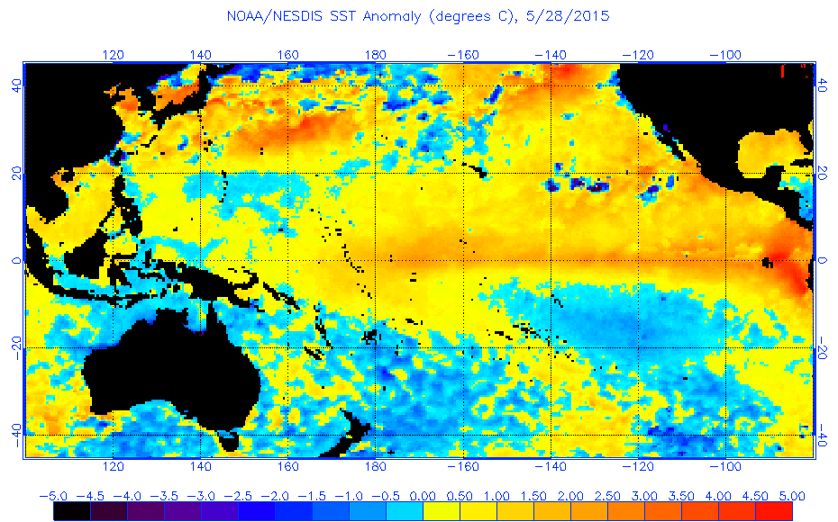 2015. május végére pedig gyakorlatilag kialakult az El Nino, minden hatásával: