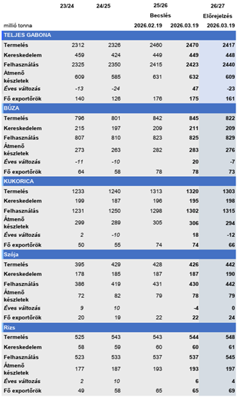 - az USDA előző évekre vonatkozó számai kicsit magasabbak, de a kormányközi szervezettel, az IGC-vel – Nemzetközi Gabonatanács – a legutóbbi jelentéseikben azonos szintre datálják az értékesítési év végére (augusztus 30.) várható zárókészletet