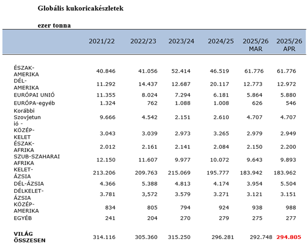 - míg a búza esetén 5 éves rekordon áll a globális készlet, addig a kukorica esetén pont 5 éves mélyponton van. Amihez azért hozzá kell tenni, ugyan a legalacsonyabb az elmúlt öt évben, de azért lehetne egy kicsivel alacsonyabb